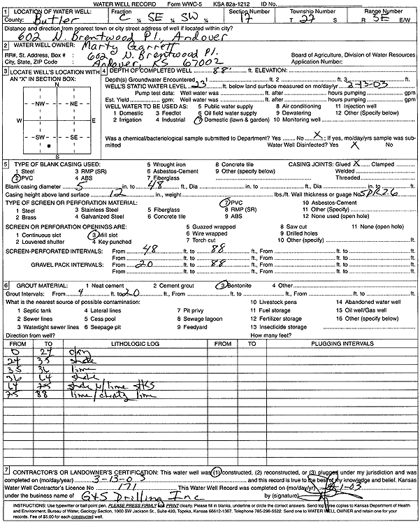 Gearhart, Jim | 80 ft. | 25 ft. | 20 gpm. | Domestic, Lawn and Garden | Constructed | 19-Oct-2007 | ||
