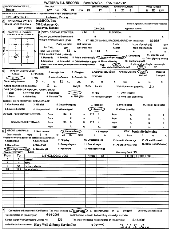 Gerheart, Jim | 90 ft. | 25 ft. | 18 gpm. | Domestic, Lawn and Garden | Constructed | 06-Feb-2007 | ||