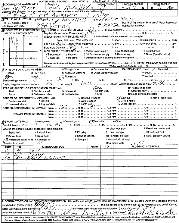 Haynes, Beverly | 65 ft. | 25 ft. | 35 gpm. | Domestic | Constructed | 10-Sep-2003 | Scan | |