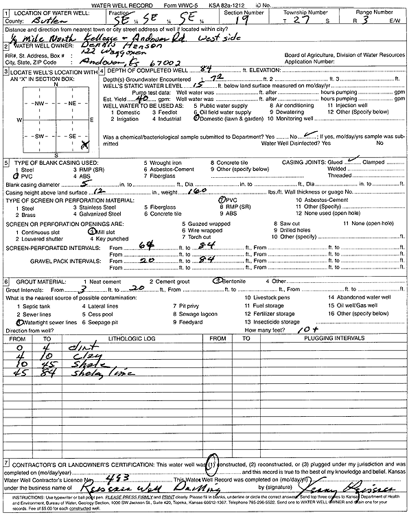 Hanson, Dennis | 84 ft. | 15 ft. | 40 gpm. | Domestic, Lawn and Garden | Constructed | 01-Aug-2003 | Scan | |