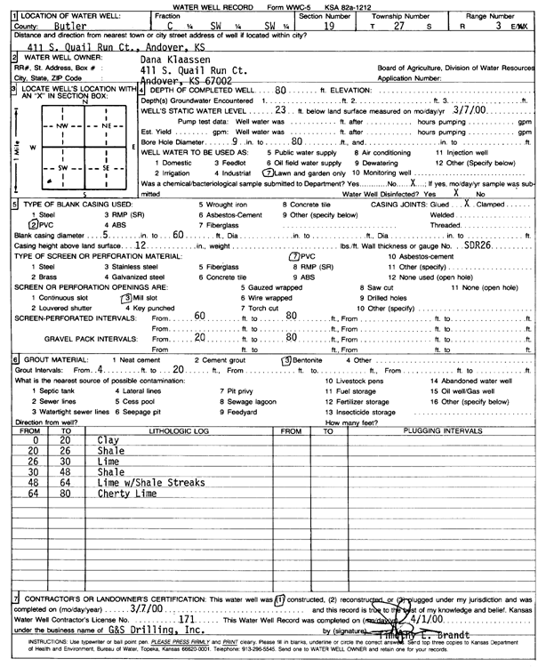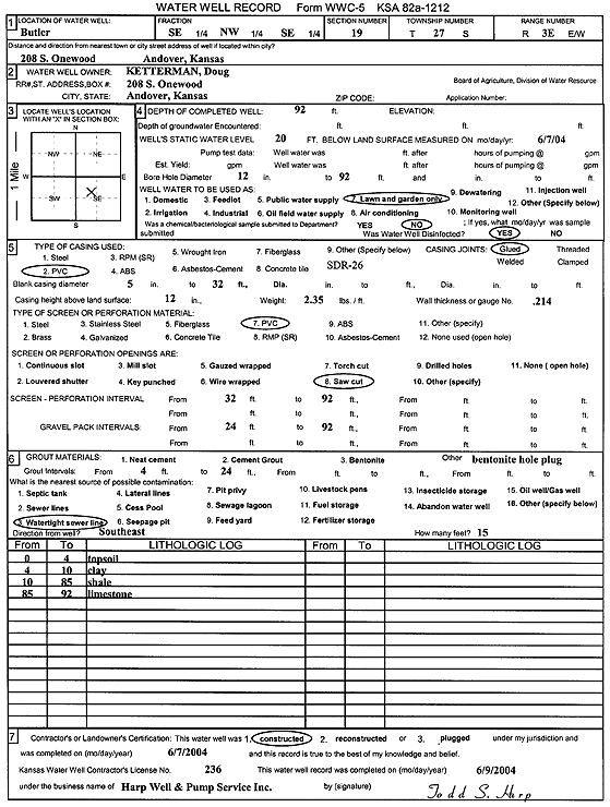 Kutter Clinic | 100 ft. | 15 ft. | Domestic, Lawn and Garden | Constructed | 18-Jun-2002 | Scan | ||