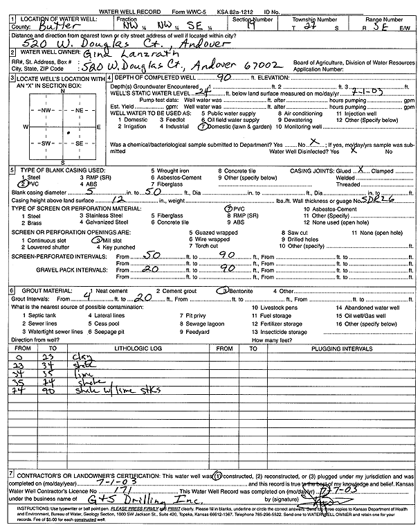 Lane, Rusty | 95 ft. | 36 ft. | 25 gpm. | Domestic, Lawn and Garden | Constructed | 08-Apr-2014 |