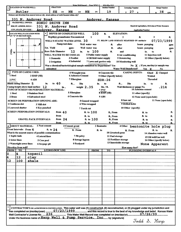 Sonic Drive-In | 100 ft. | 30 ft. | Domestic, Lawn and Garden | Constructed | 23-Jul-1999 | Scan | ||
