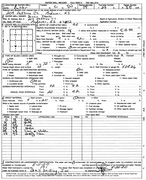 Smith, Larry | 105 ft. | Domestic, Lawn and Garden | Plugged | 01-Oct-1992 | ||||