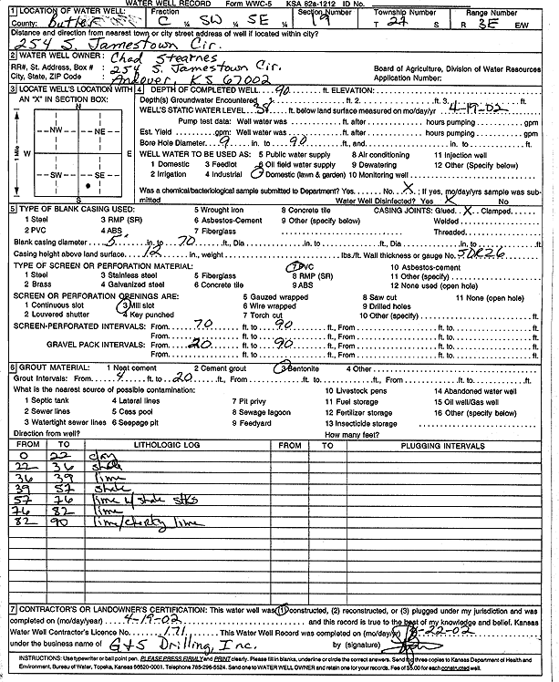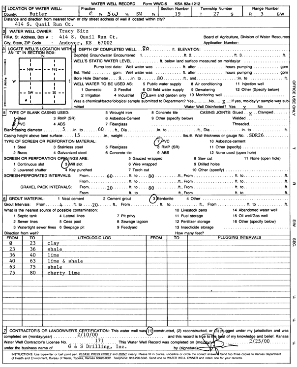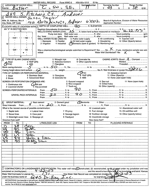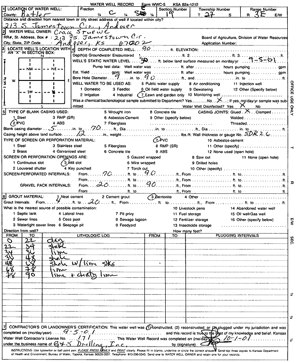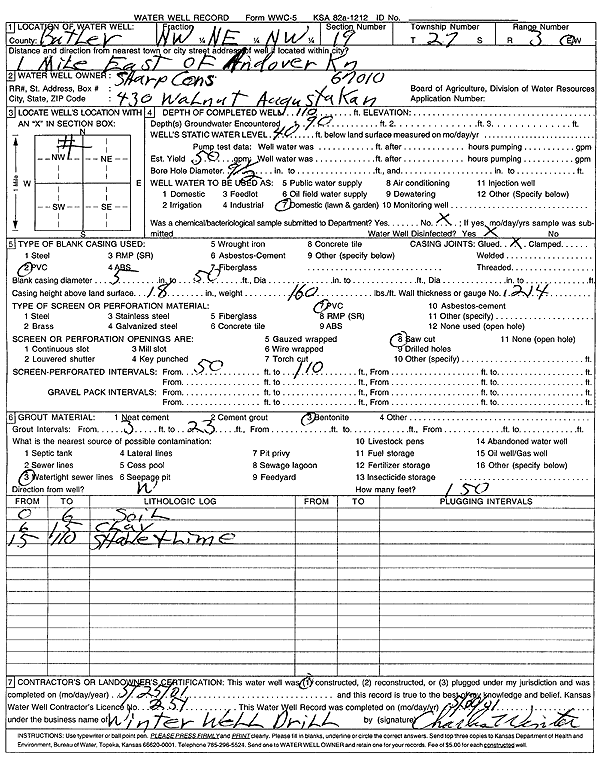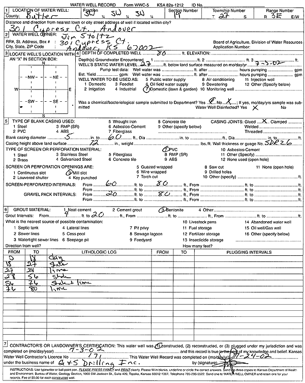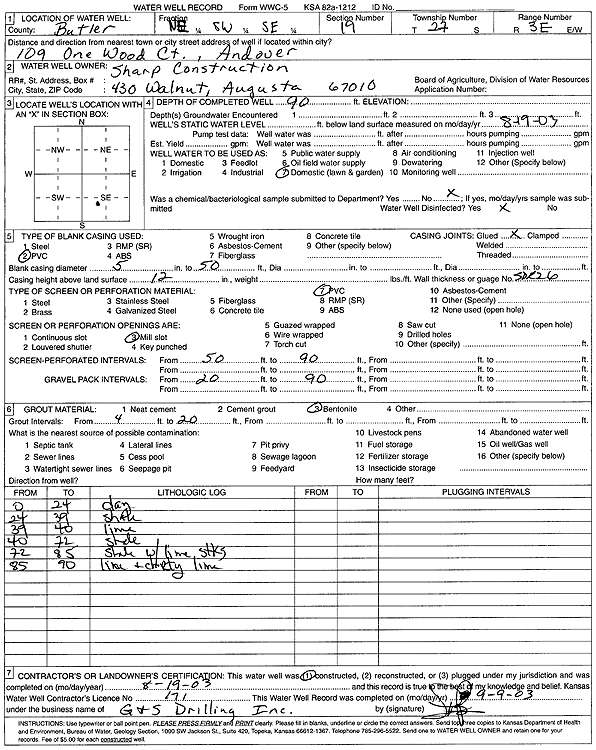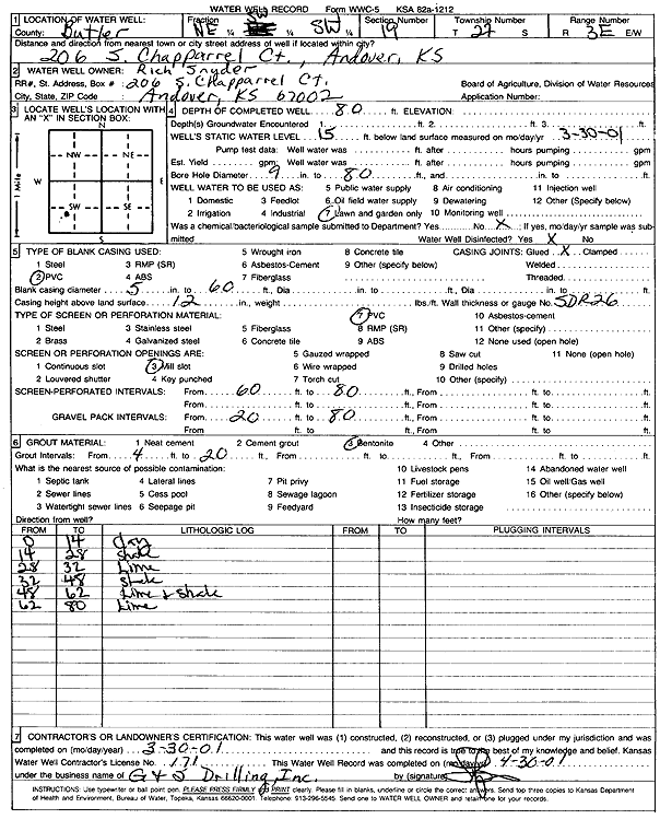 Slepler, Norma | 80 ft. | 19 ft. | 50 gpm. | Domestic, Lawn and Garden | Constructed | 15-Jun-1995 | ||