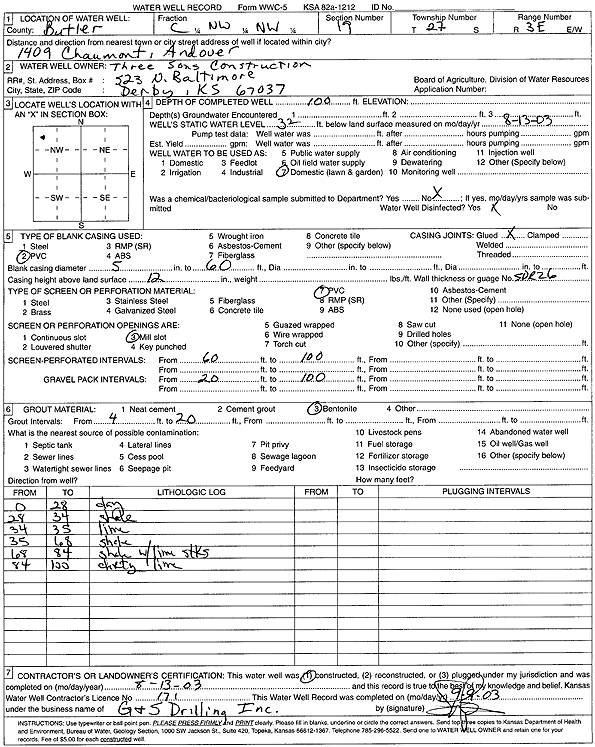 Treat, Edwina | 100 ft. | 20 ft. | 20 gpm. | Domestic, Lawn and Garden | Constructed | 02-Sep-2025 |