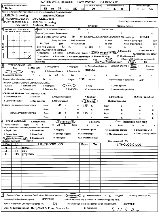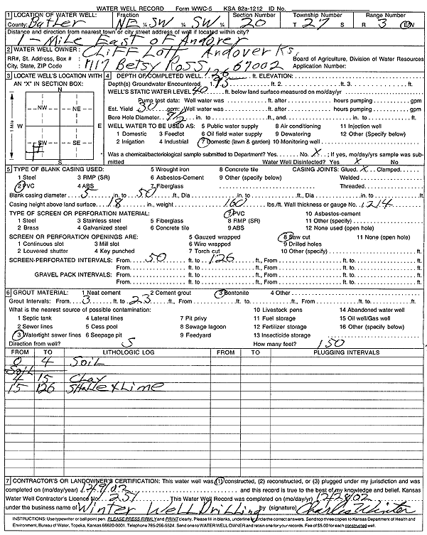 Lott, Cliff | 126 ft. | 40 ft. | 30 gpm. | Domestic, Lawn and Garden | Constructed | 09-Dec-2002 | Scan | |