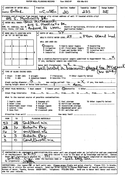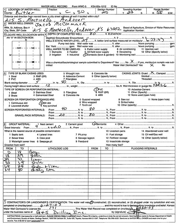 McCormack, Jacob | 57 ft. | 28 ft. | Domestic | Plugged | 04-Jun-2003 | Scan | ||