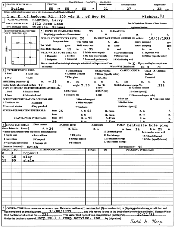 Blevins, Larry | 95 ft. | 20 ft. | Domestic, Lawn and Garden | Constructed | 08-Oct-1999 | Scan | ||