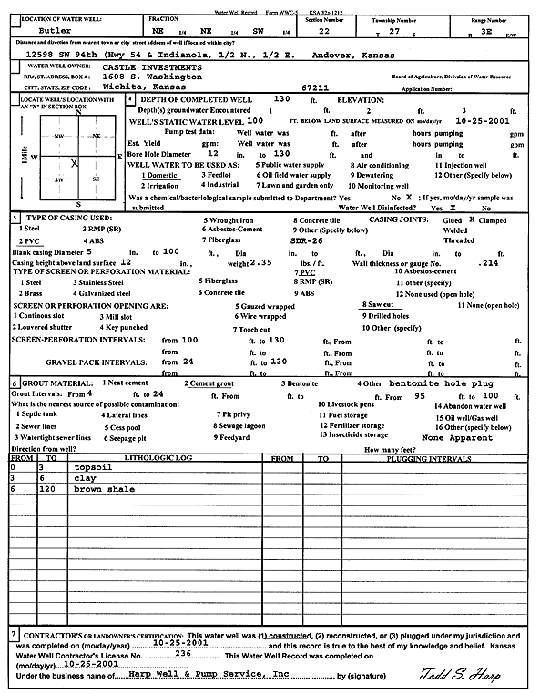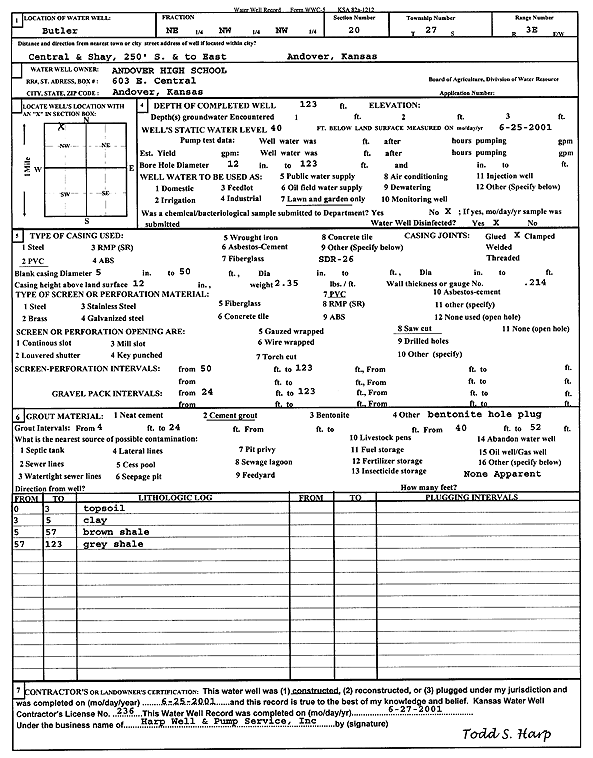 Wichita Area Girl Scout Council | 20 ft. | 9.5 ft. | Domestic | Plugged | 21-Oct-1995 | |||