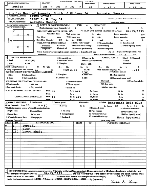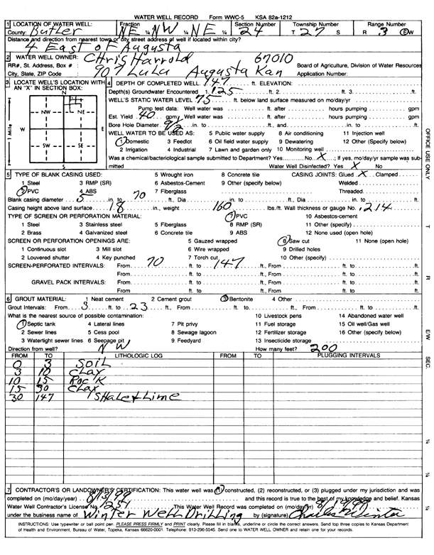 Harrold, Chris | 147 ft. | 75 ft. | 40 gpm. | Domestic | Constructed | 13-Aug-1999 | Scan | |