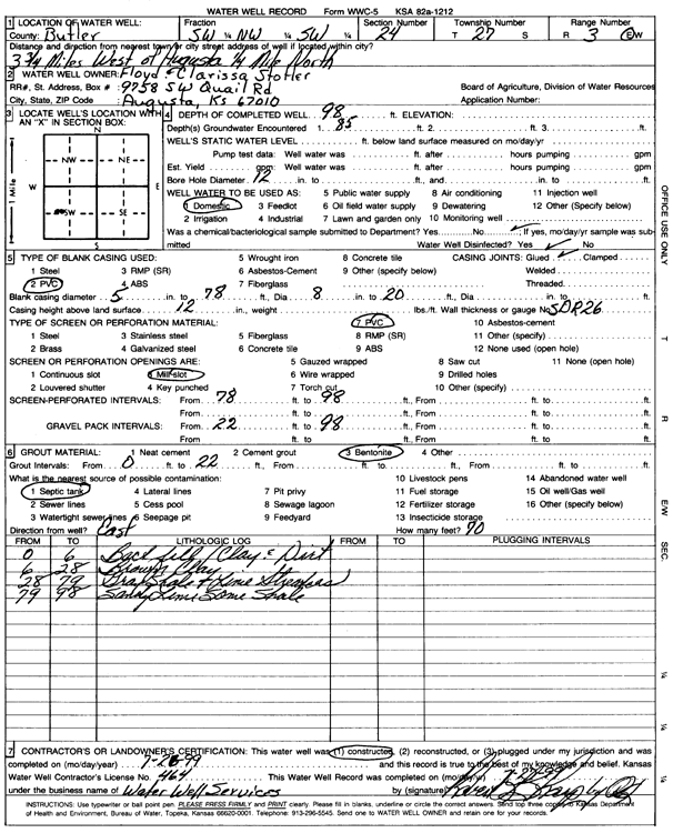 Davis, Walt | 167 ft. | 70 ft. | 20 gpm. | Domestic | Constructed | 15-Jan-1992 | ||