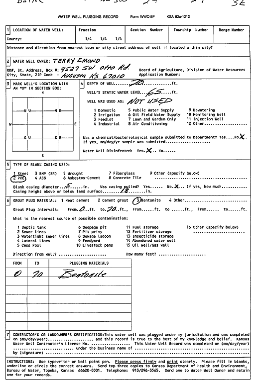 Emond, Terry | 70 ft. | 65 ft. | (unstated)/abandoned | Plugged | Scan | |||
