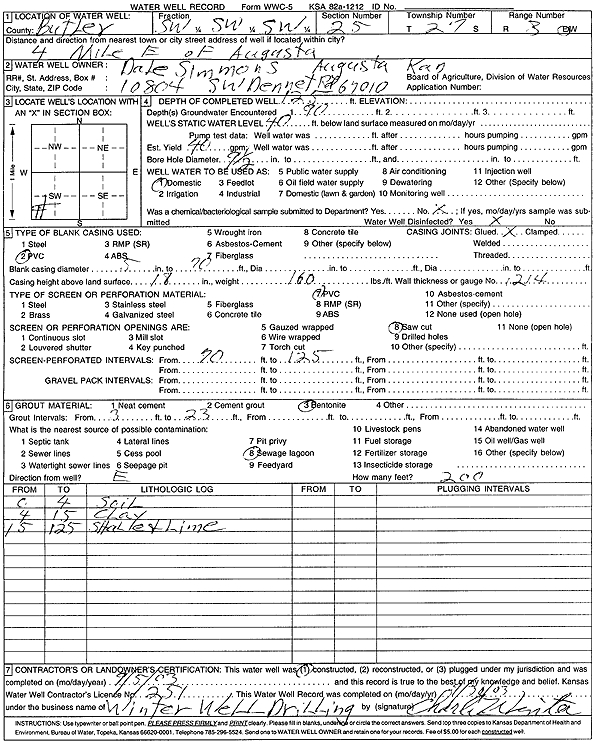 Simmons, Dale | 125 ft. | 40 ft. | 40 gpm. | Domestic | Constructed | 05-Sep-2003 | Scan | |