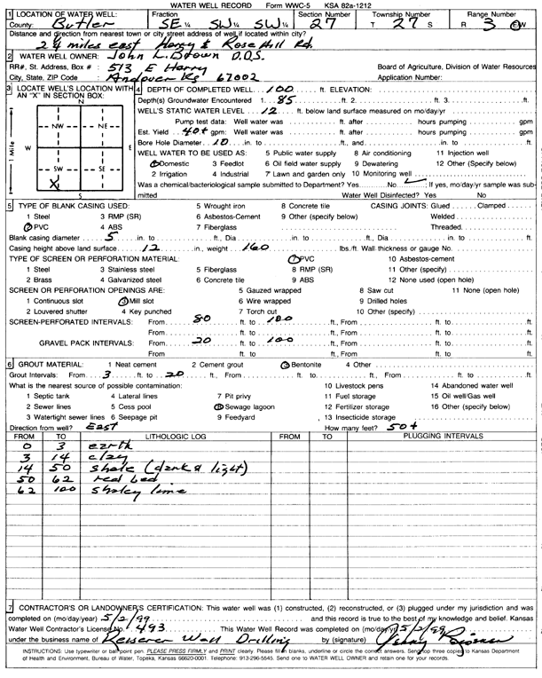 Brown, John L. | 100 ft. | 12 ft. | 40 gpm. | Domestic | Constructed | 02-May-1999 | Scan | |