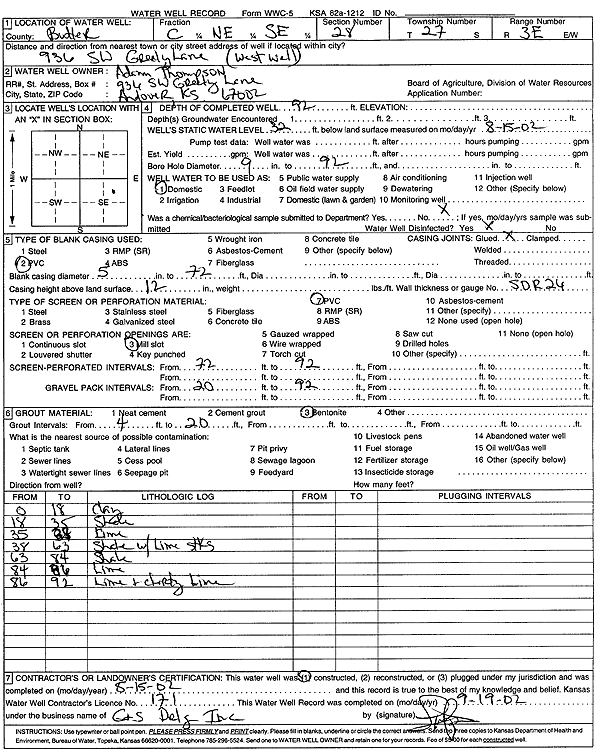 Thompson, Adam | 92 ft. | 32 ft. | Domestic | W well | Constructed | 15-Aug-2002 | Scan | |