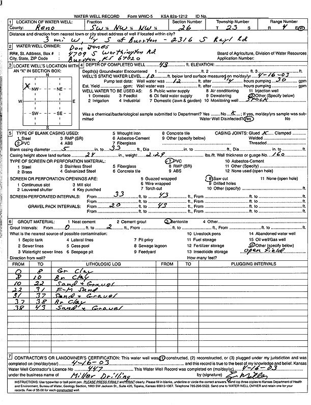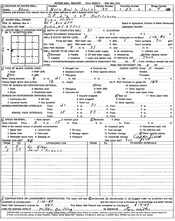 Miller, Ivan | 31 ft. | 8 ft. | Domestic, Livestock | Constructed | 12-Jan-1989 | Scan | ||