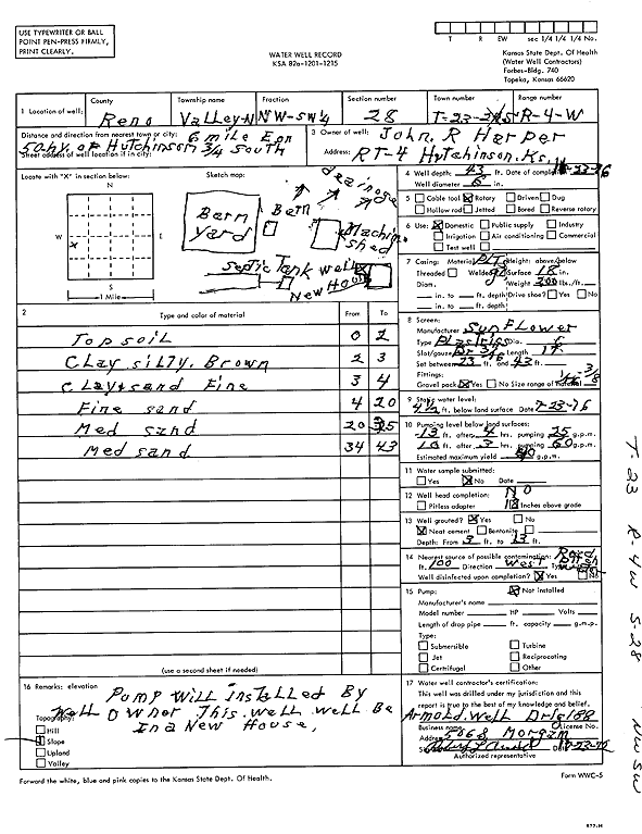 Harper, John R. | 43 ft. | 4.5 ft. | 40 gpm. | Domestic | Constructed | 23-Oct-1976 | Scan | |