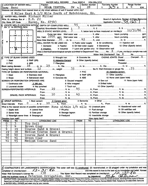 Miller, Richard | 45 ft. | 3 ft. | 1000 gpm. | Irrigation | Constructed | 31-Dec-1986 | Scan | |