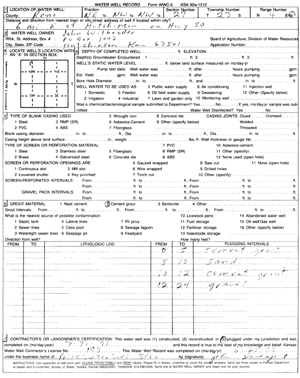 Withroder, John | 24 ft. | Domestic | Plugged | 31-Jul-1991 | Scan | |||