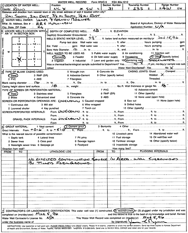 Smith, Al | 30 ft. | 7 ft. | Domestic, Livestock | Constructed | 20-Aug-1994 | Scan | ||
