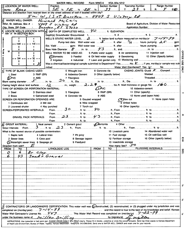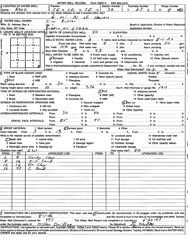 Butler, Jim | 40 ft. | 6 ft. | 100 gpm. | Domestic | Constructed | 01-Aug-1986 | Scan | |