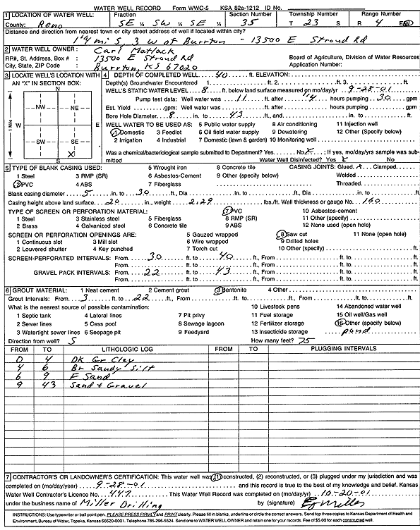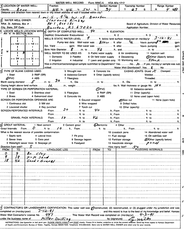 Rimbey, Clarence | 40 ft. | 9 ft. | Domestic, Livestock | Constructed | 12-Mar-1991 | Scan | ||