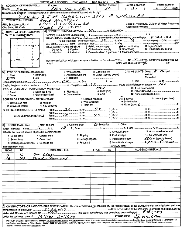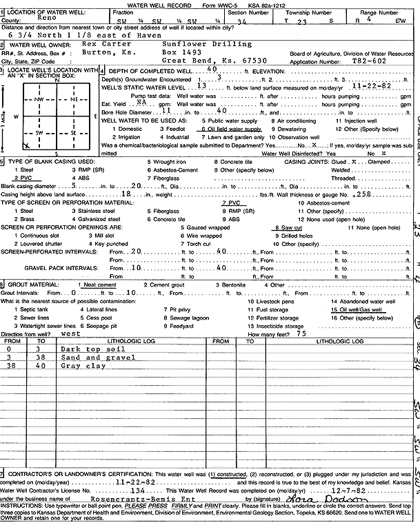 Sunflower Drilling/Carter, Rex | 40 ft. | 13 ft. | Oil Field Water Supply | Constructed | 22-Nov-1982 | Scan | ||