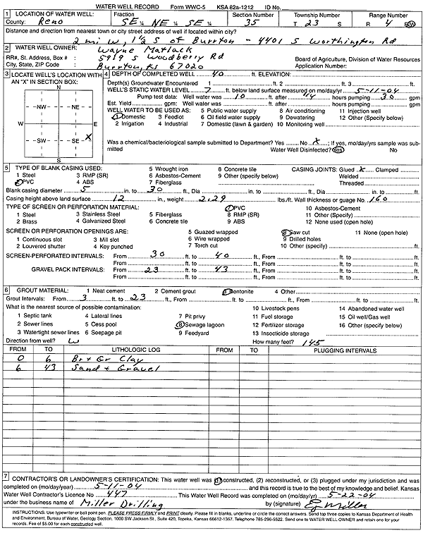 County: Reno Select location of well to view details. Click on column heading to sort. |