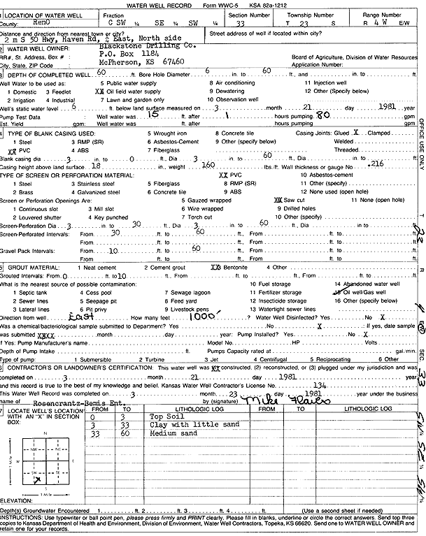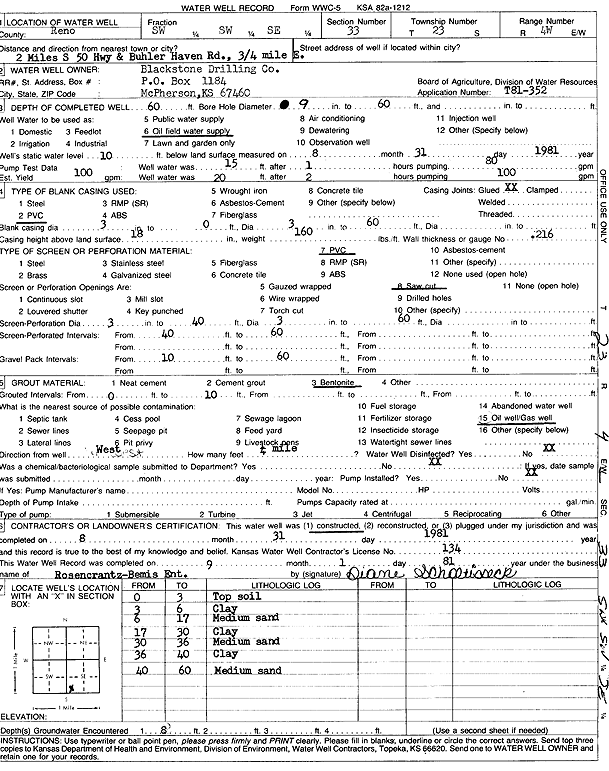 Blackstone Drilling Co. | 60 ft. | 10 ft. | 100 gpm. | Oil Field Water Supply | Constructed | 31-Aug-1981 | Scan | |