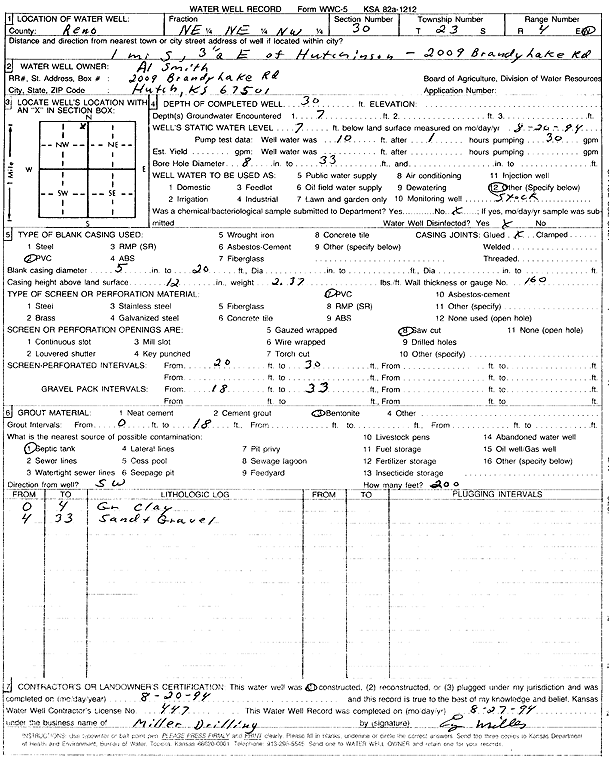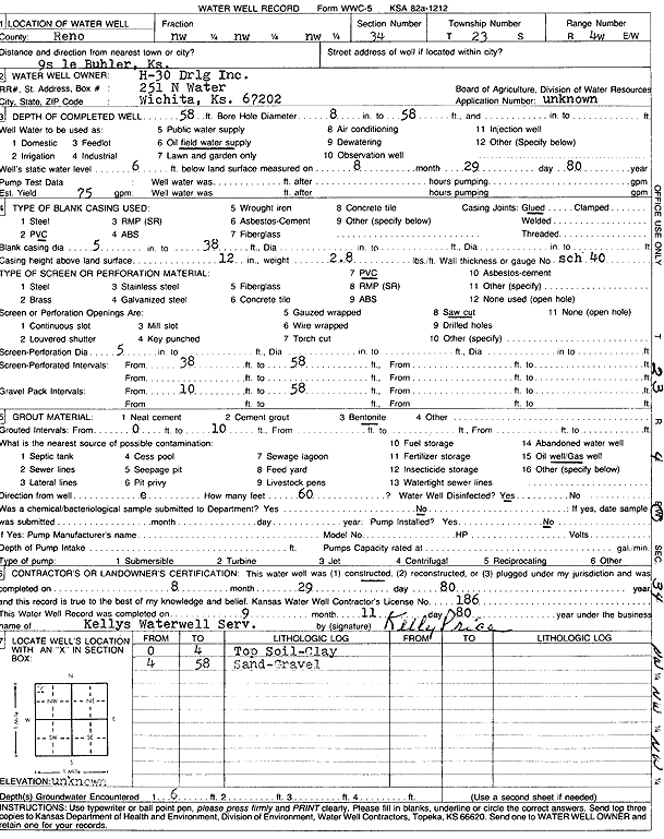 H-30 Drilling, Inc. | 58 ft. | 6 ft. | 75 gpm. | Oil Field Water Supply | Constructed | 29-Aug-1980 | Scan | |
