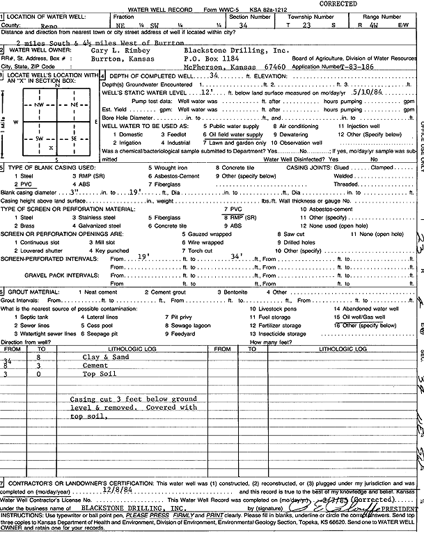 Blackstone Drilling/Gary L. Rimbey | 34 ft. | 12 ft. | Oil Field Water Supply | Plugged | 08-Dec-1984 | Scan | ||