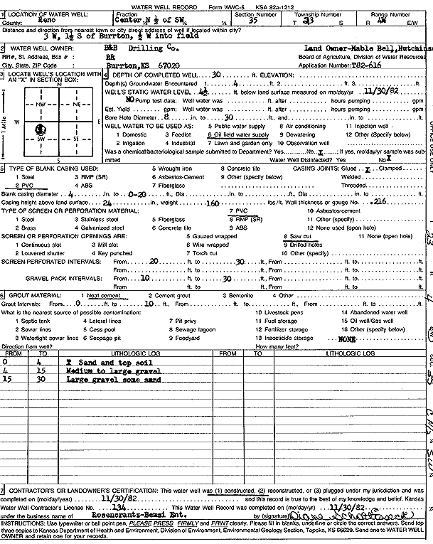 B and B Drilling/Bell, Mable | 30 ft. | 4.5 ft. | Oil Field Water Supply | Constructed | 30-Nov-1982 | Scan | ||