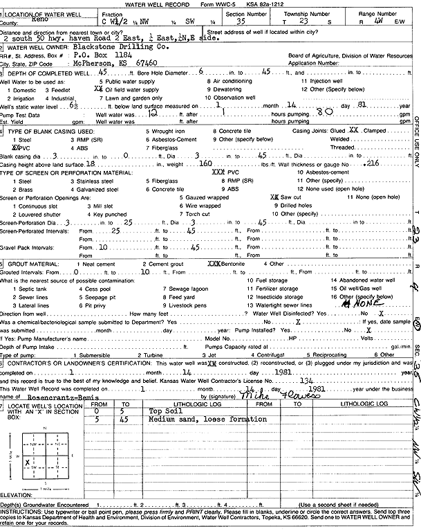 Blackstone Drilling Co. | 45 ft. | 6.5 ft. | Oil Field Water Supply | Constructed | 14-Jan-1981 | Scan | ||