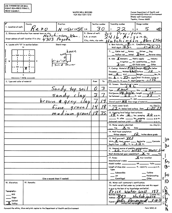 Strawn Contracting | 37 ft. | 18 ft. | 20 gpm. | Domestic | Constructed | 20-Dec-1993 | Scan | |