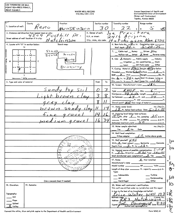 Previtera, Joe | 34 ft. | 18 ft. | 50 gpm. | Domestic | Constructed | 20-May-1975 | Scan | |