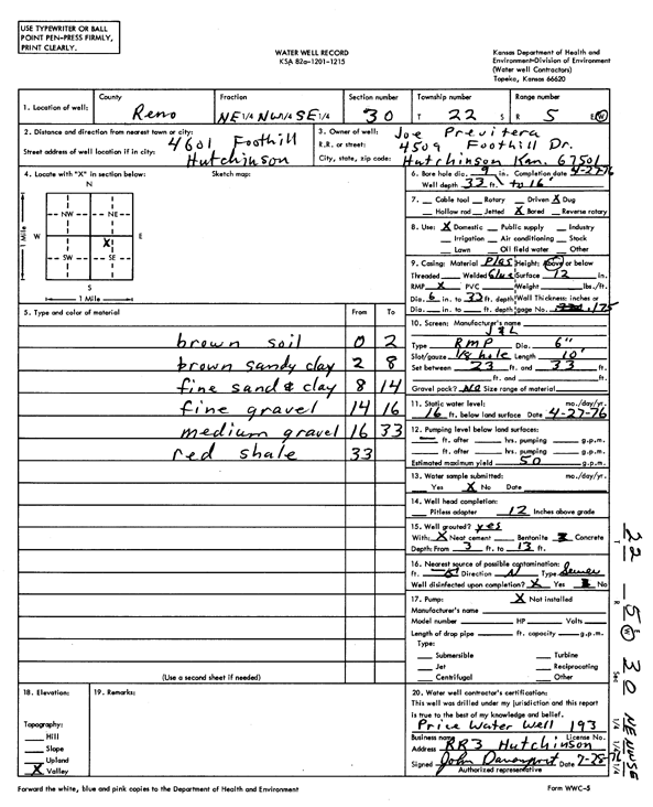 Previtera, Joe | 33 ft. | 16 ft. | 50 gpm. | Domestic | Constructed | 27-Apr-1976 | Scan | |