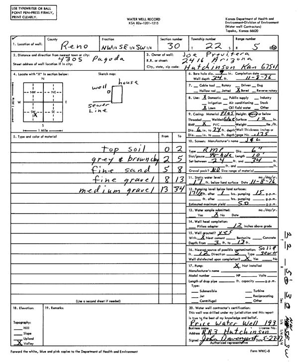 Previtera, Joe | 34 ft. | 18 ft. | 50 gpm. | Domestic | Constructed | 01-Oct-1976 | Scan | |
