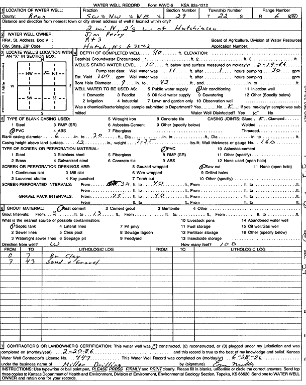 Perry, Jim | 40 ft. | 10 ft. | 100 gpm. | Domestic | Constructed | 20-Feb-1986 | Scan | |