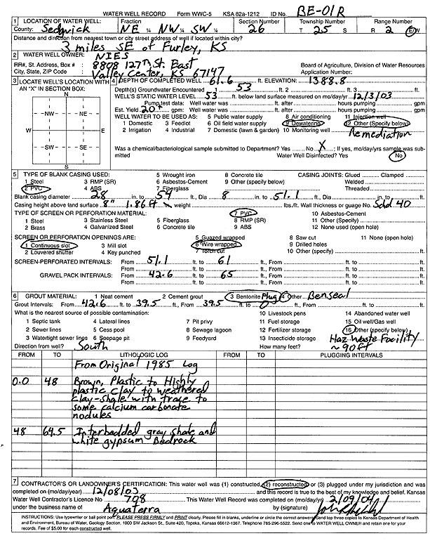 Nies | 61.6 ft. | 53 ft. | 20 gpm. | Dewatering | BE 1 R | Reconstructed | 08-Dec-2003 | Scan |