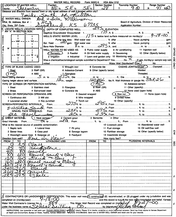 Wilkinson, Rod and Lela | 295 ft. | 175 ft. | 20 gpm. | Domestic | Constructed | 18-Sep-2000 | Scan | |