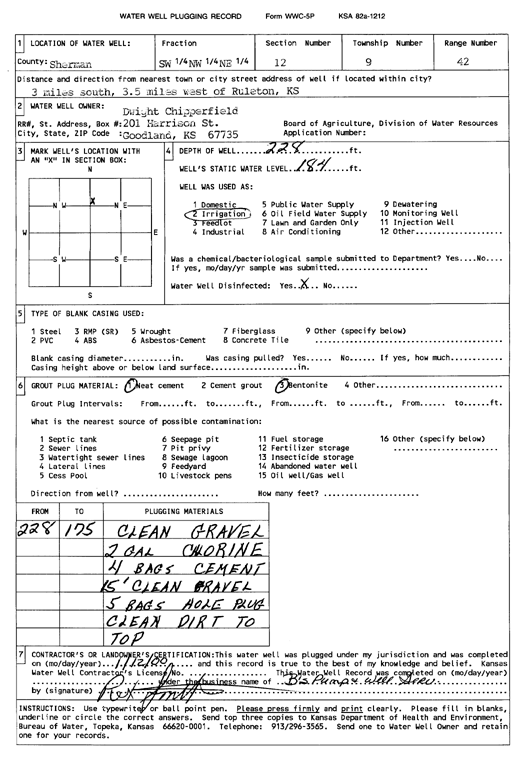 Chipperfield, Dwight | 228 ft. | 184 ft. | Irrigation | Plugged | 12-Jan-2000 | Scan | ||