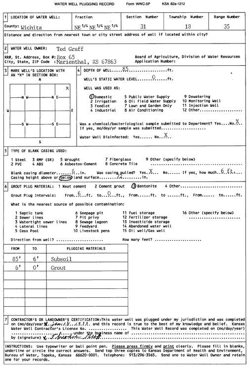 Graff, Ted | 85 ft. | 0 ft. | Domestic | Plugged | 18-Jan-1999 | Scan | ||