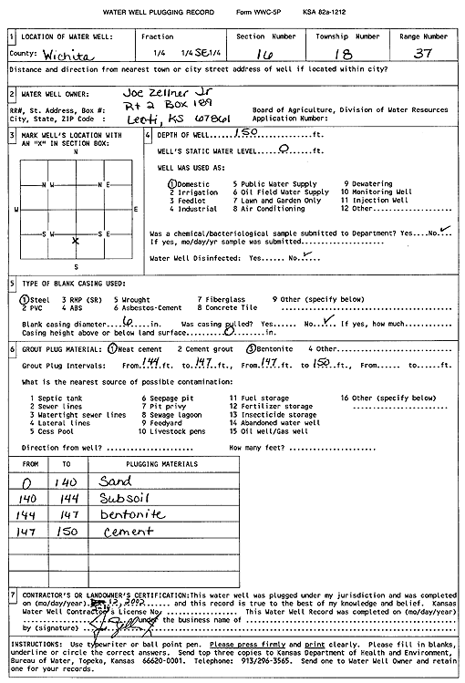Zellner, Joe, Jr. | 150 ft. | Domestic | Plugged | 01-Jul-2002 | Scan | |||