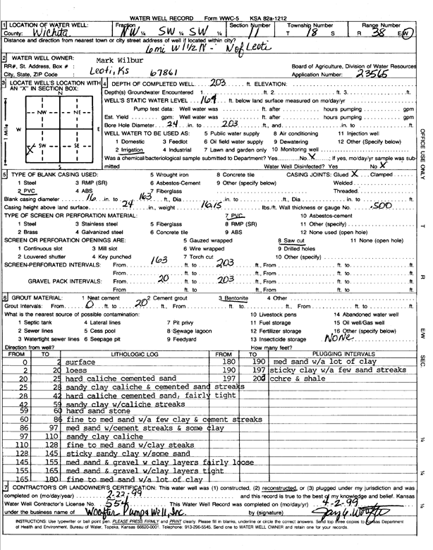 Wilbur, Mark | 185 ft. | 165 ft. | Irrigation | Plugged | 25-Mar-1999 | |||