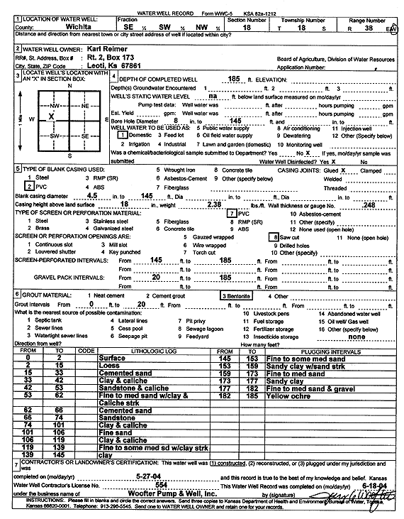 Reimer, Karl | 170 ft. | 140 ft. | Domestic, Livestock | Plugged | 01-Jan-2005 | |||