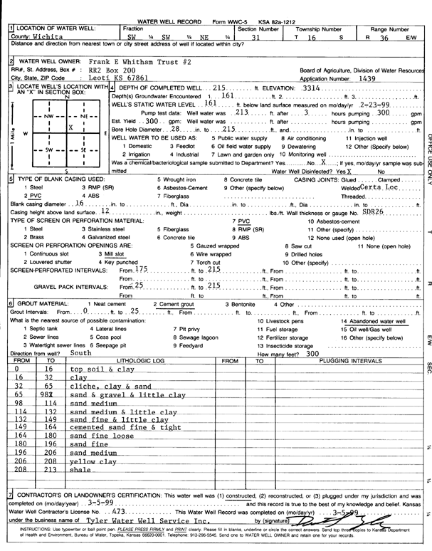 Frank E. Whitham Trust | 215 ft. | 161 ft. | 300 gpm. | Irrigation | Constructed | 05-Mar-1999 | Scan | |