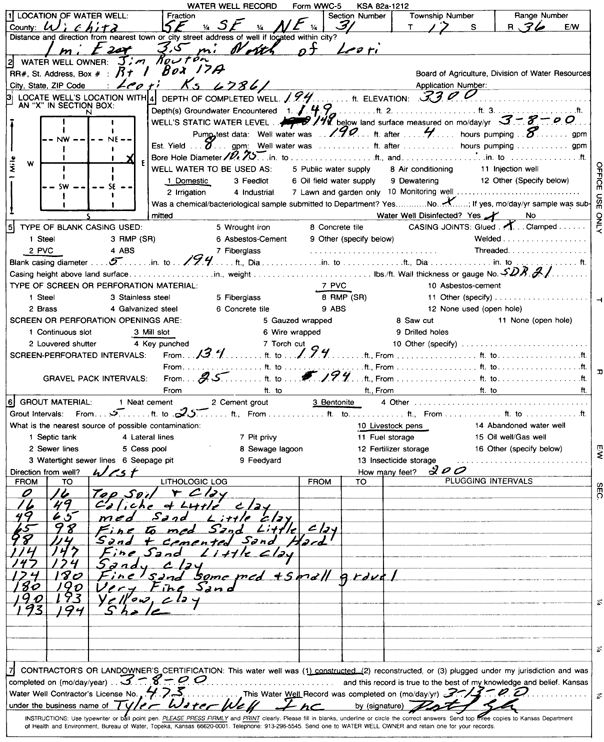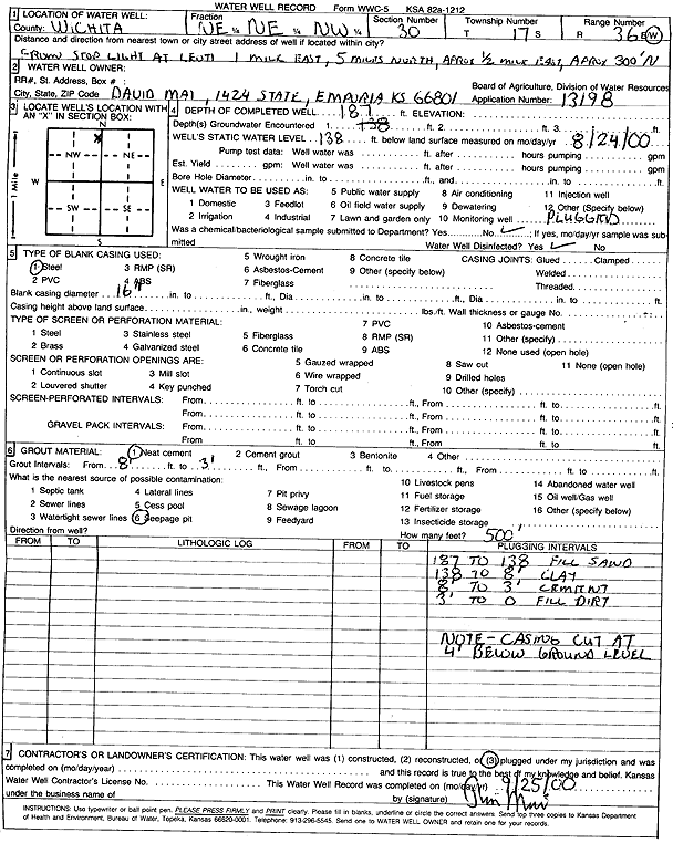 Mai, David | 187 ft. | 138 ft. | Irrigation | Plugged | 24-Aug-2000 | Scan | ||