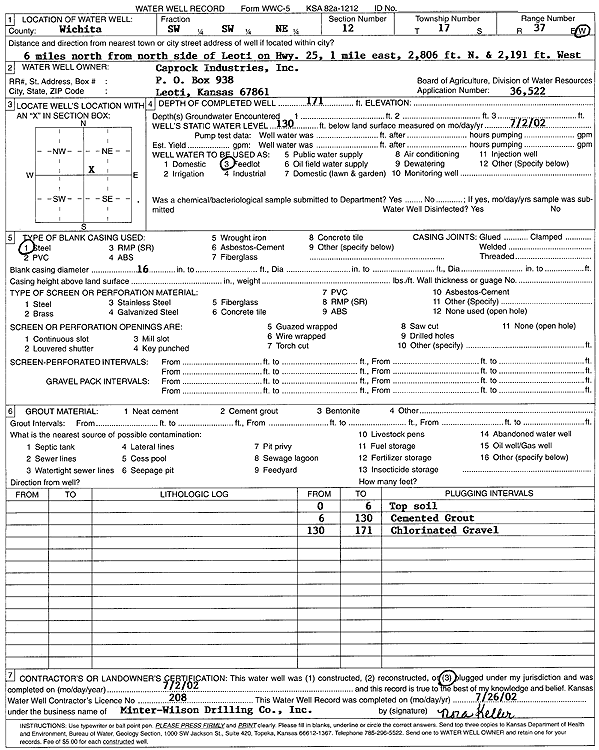 Caprock Industries, Inc. | 171 ft. | 130 ft. | Feedlot | Plugged | 02-Jul-2002 | Scan | ||