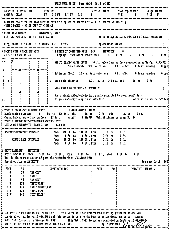 Rostetter, Nancy | 140 ft. | 99 ft. | 10 gpm. | Domestic | Constructed | 14-Jan-2001 | Scan | |